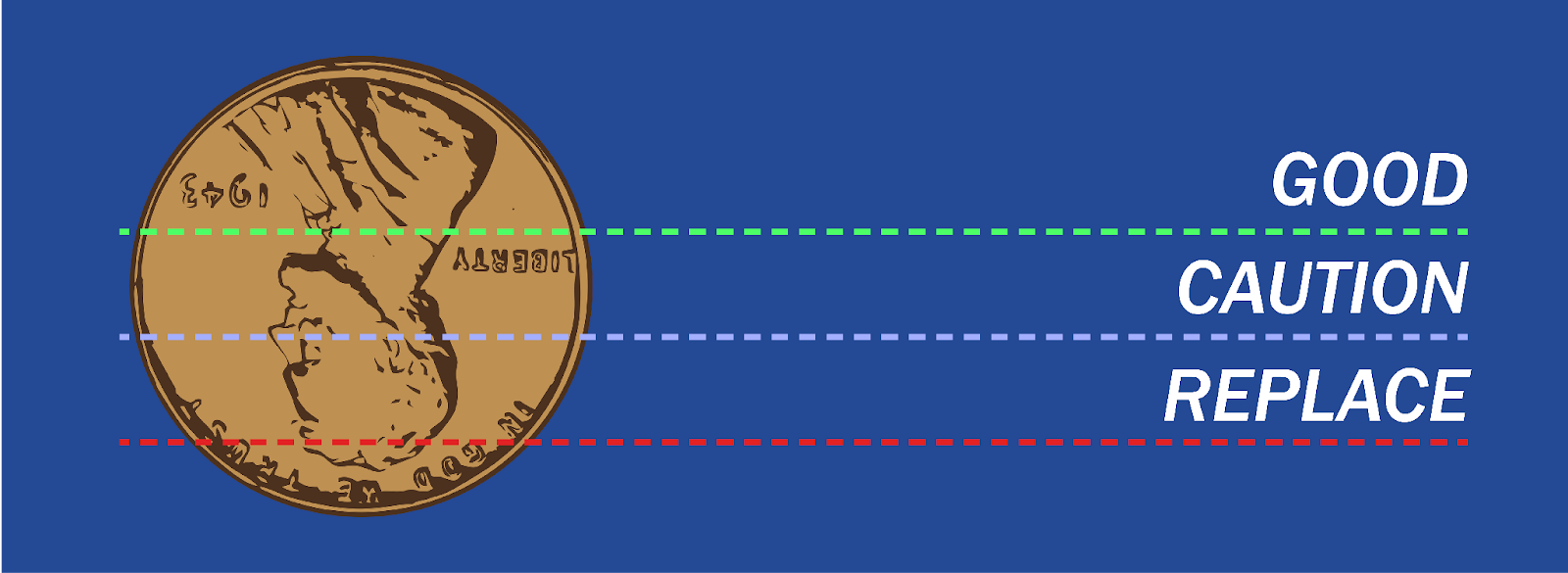 If you can see the top of Washington’s head when the quarter is inserted into the tire, it’s time to buy new ones.